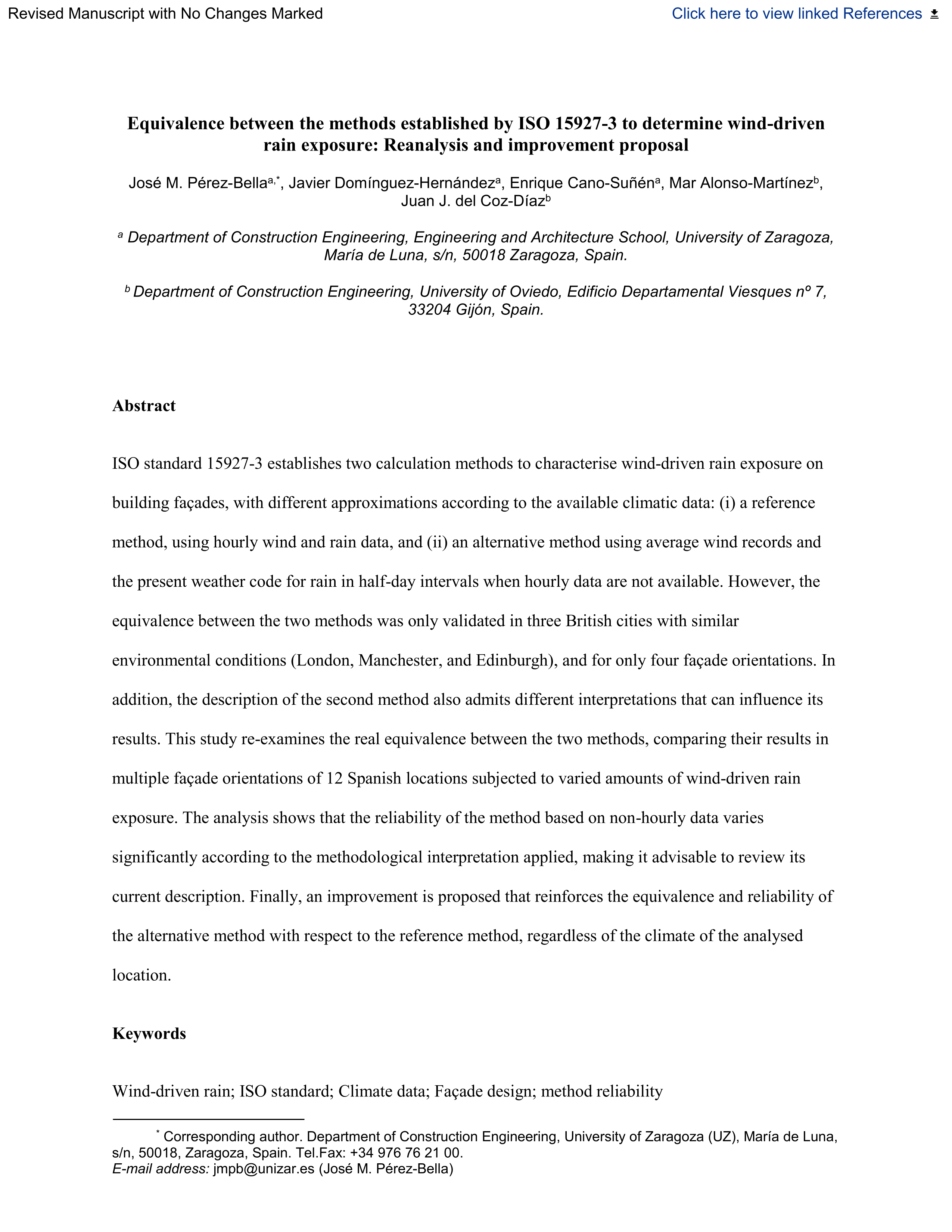 | Accueil > articulos > Equivalence between the methods established by ISO 15927-3 to determine wind-driven rain exposure: Reanalysis and improvement proposal |
