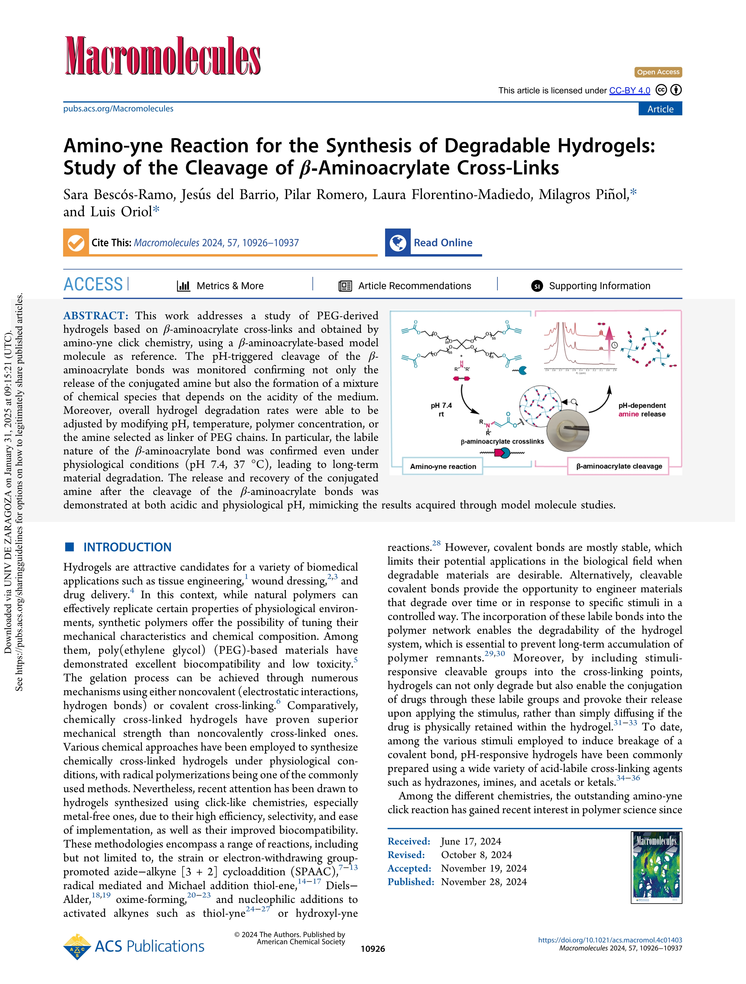 | Accueil > articulos > Amino-yne reaction for the synthesis of degradable hydrogels: Study of the cleavage of ß-Aminoacrylate Cross-Links |