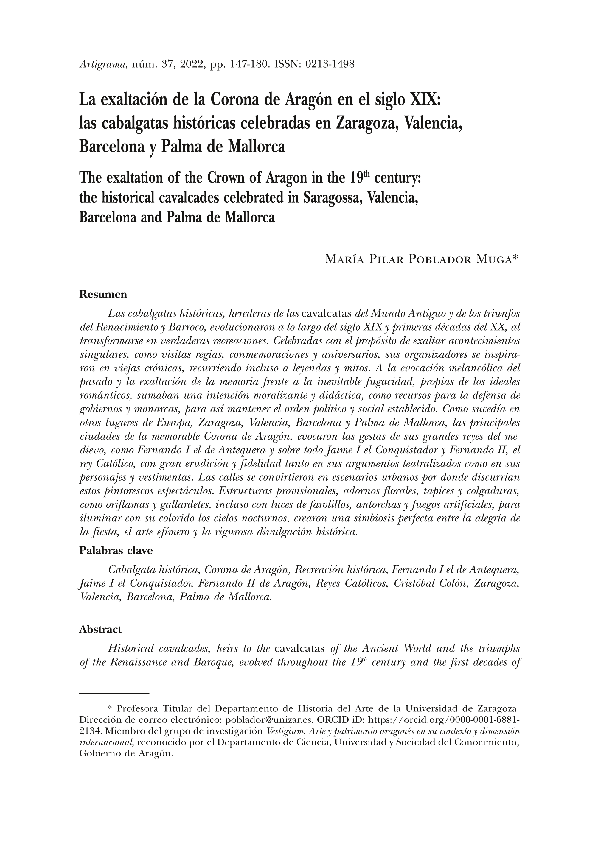 La exaltación de la Corona de Aragón en el siglo XIX: las cabalgatas históricas celebradas en Zaragoza, Valencia, Barcelona y Palma de Mallorca