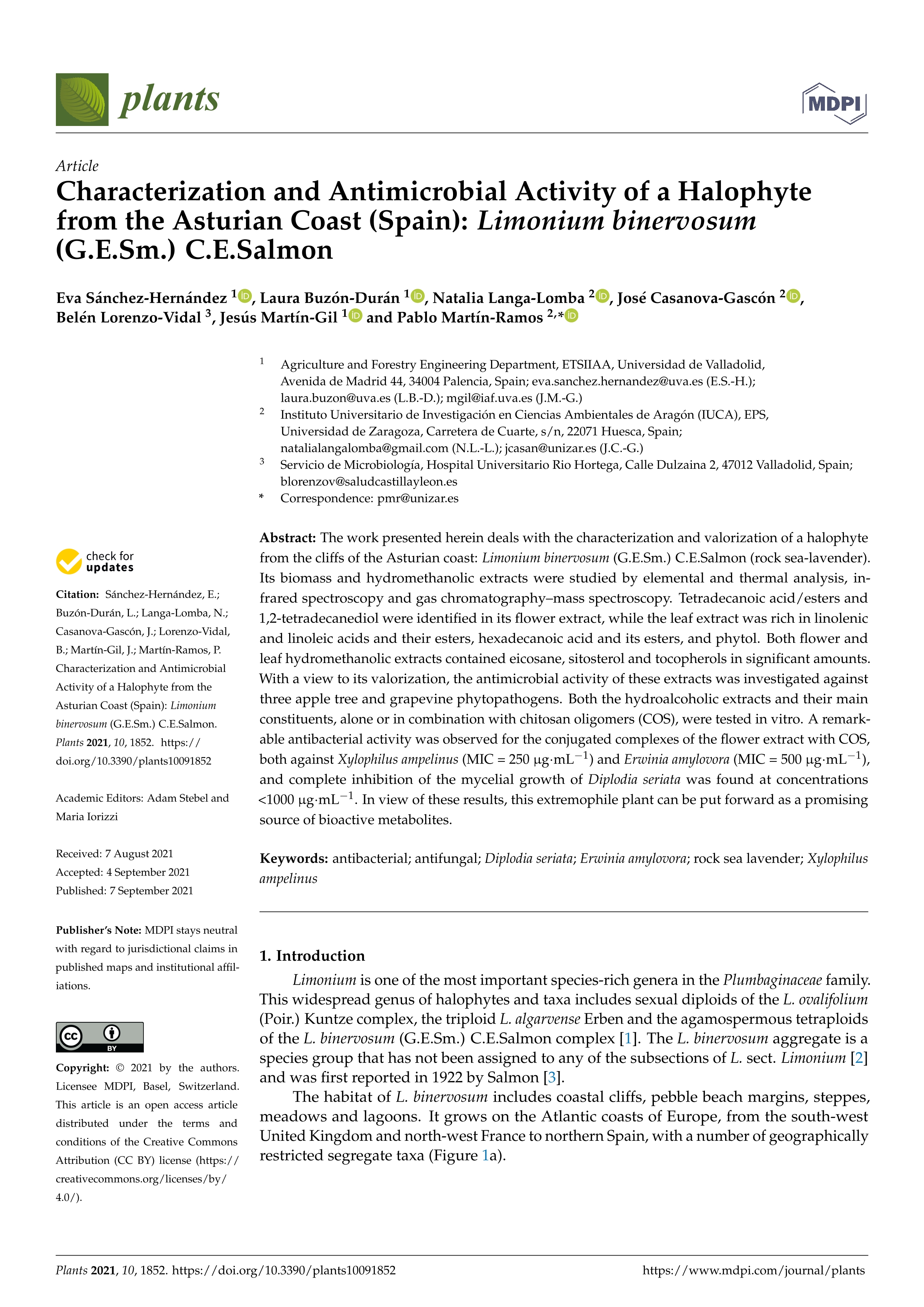 | Página principal > Artículos > Characterization and antimicrobial activity of a halophyte from the asturian coast (Spain): Limonium binervosum (g.e.sm.) c.e.salmon |