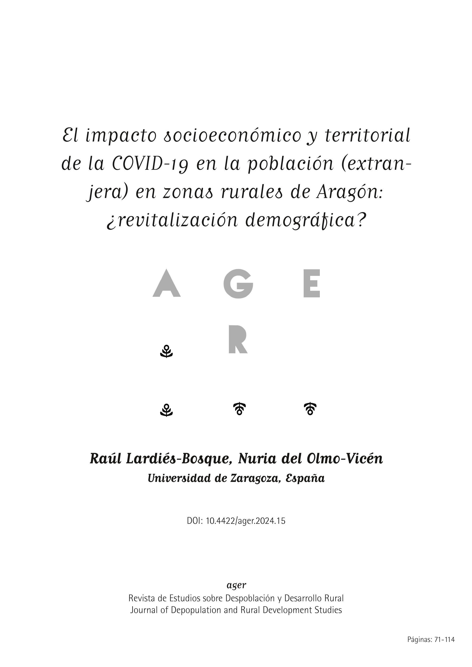 | Accueil > articulos > El impacto socioeconómico y territorial de la covid-19 en la población (extranjera) en zonas rurales de Aragón: ¿revitalización demográfica? |