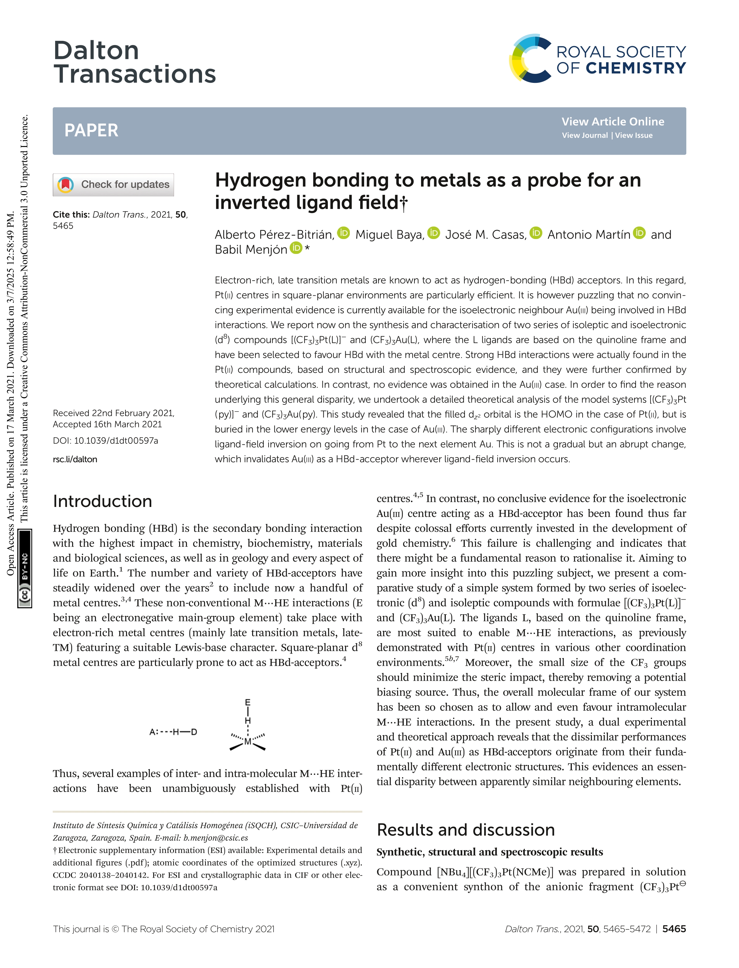 Hydrogen bonding to metals as a probe for an inverted ligand field