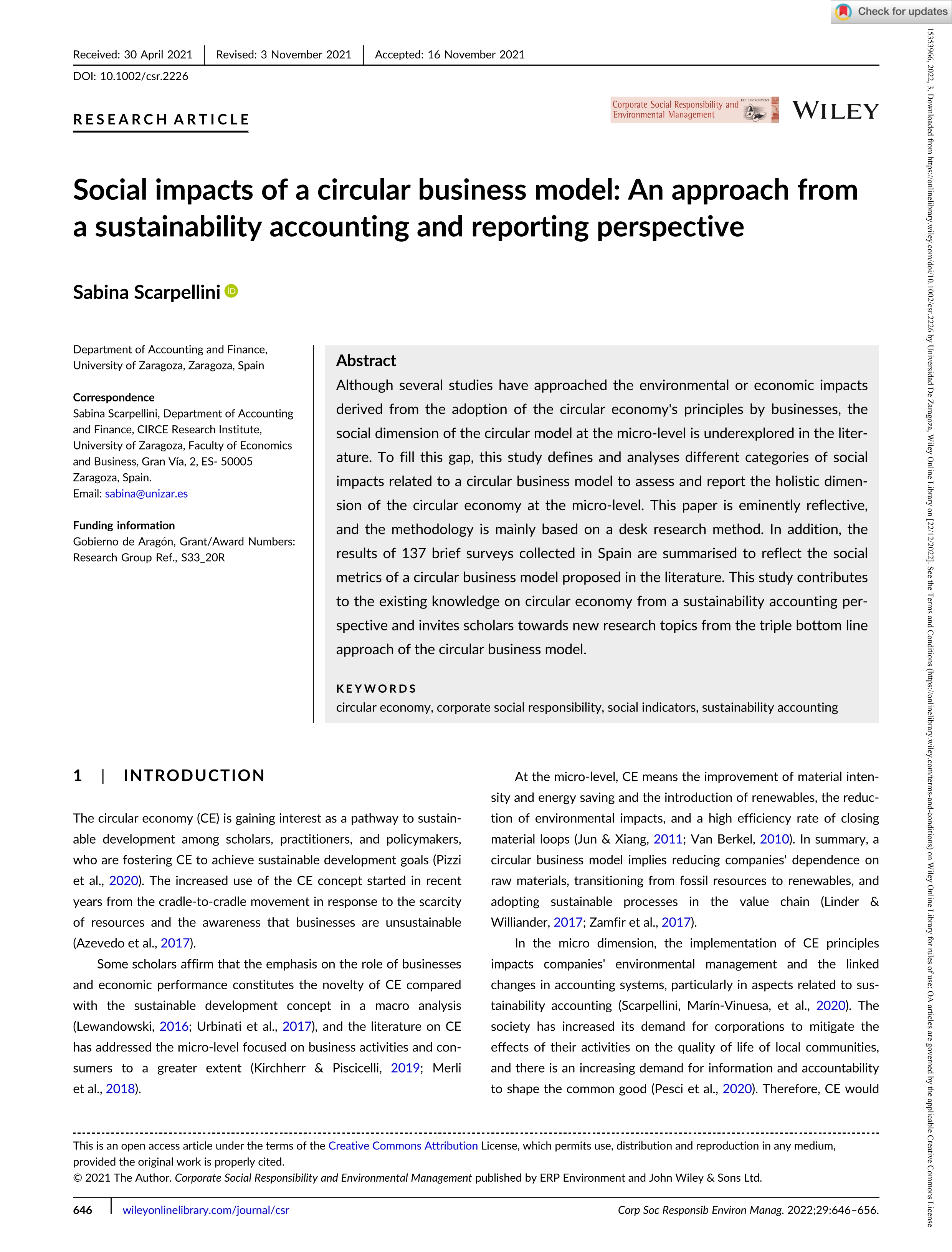 Social impacts of a circular business model: An approach from a sustainability accounting and reporting perspective
