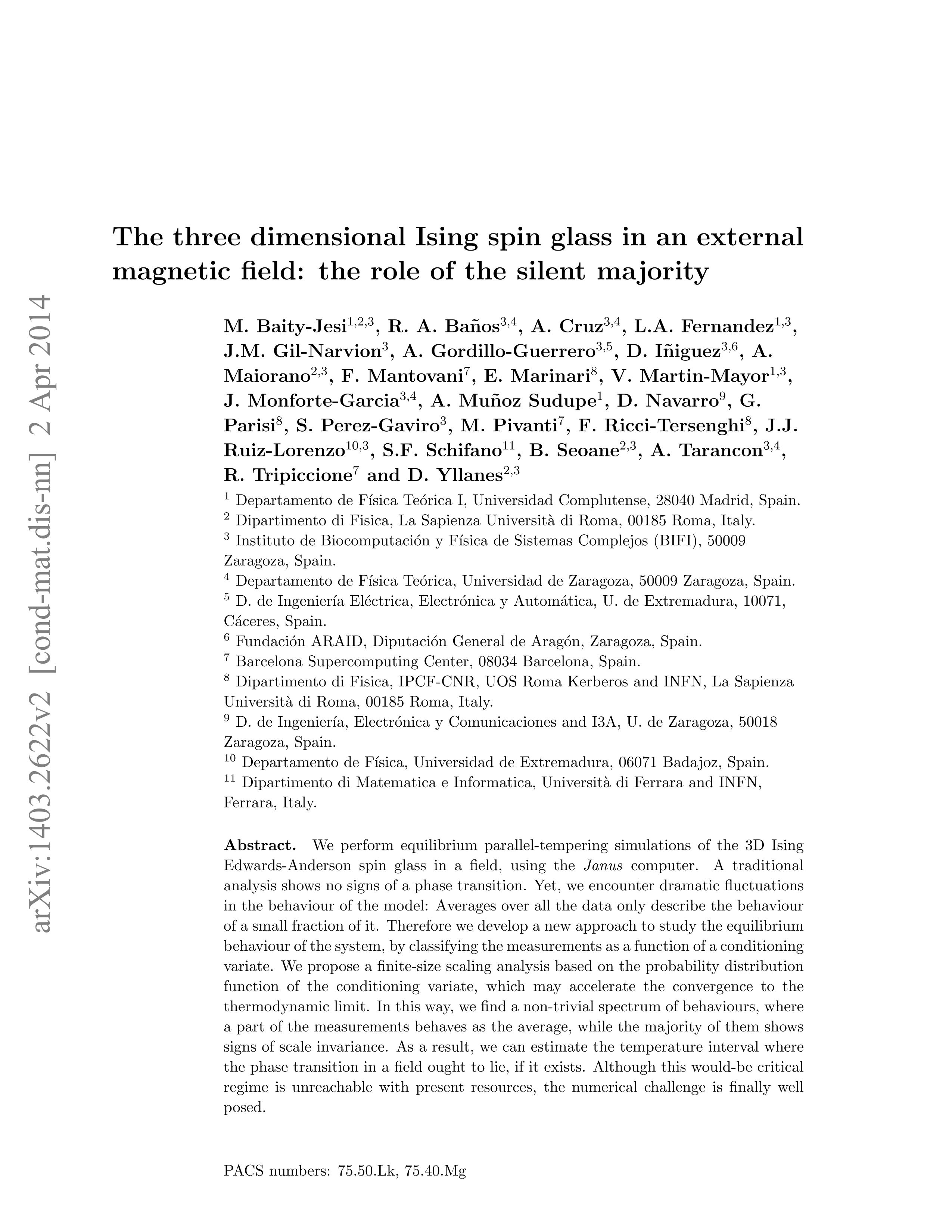 | Página principal > Artículos > The three-dimensional Ising spin glass in an external magnetic field: The role of the silent majority |