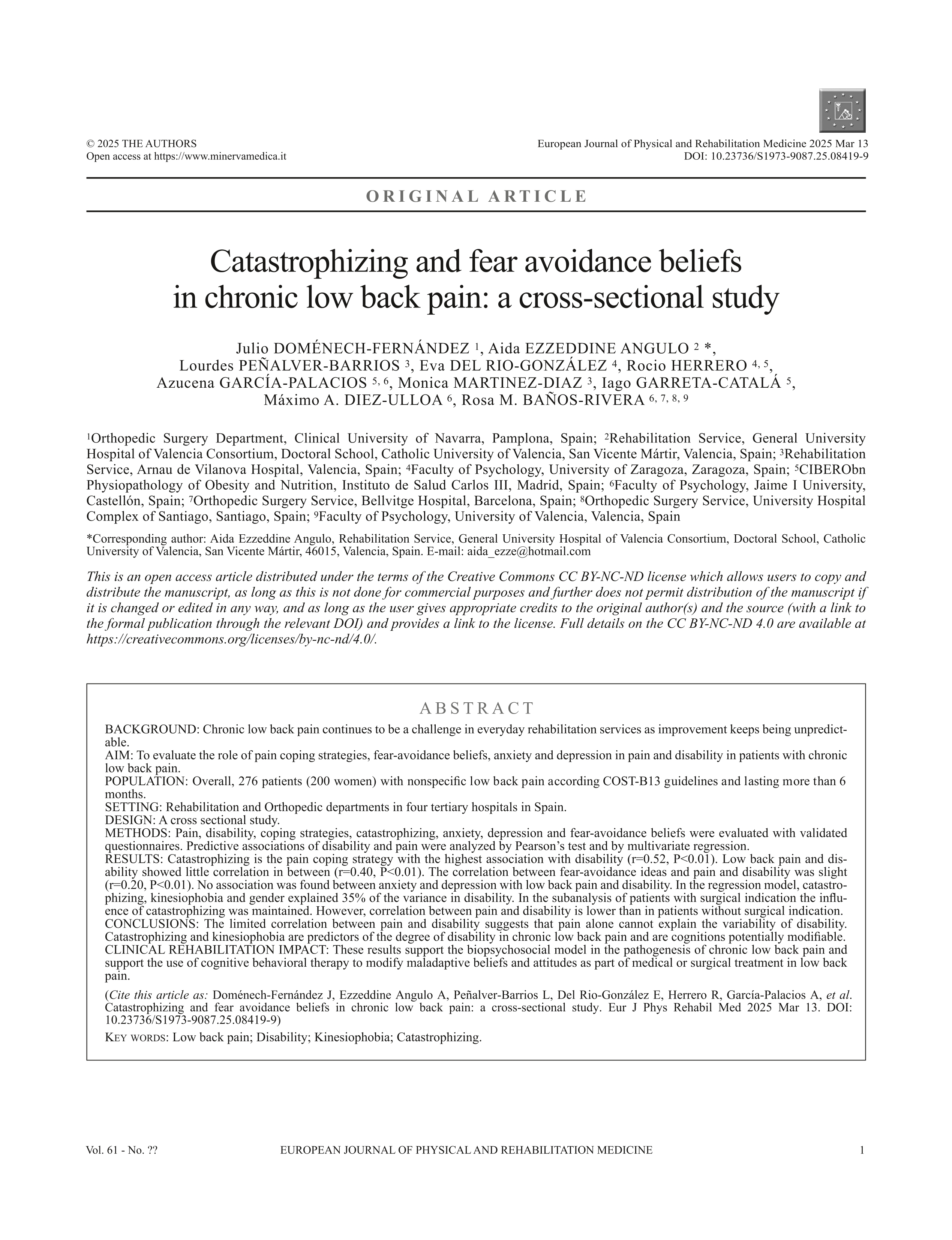 Catastrophizing and fear avoidance beliefs in chronic low back pain: a cross-sectional study