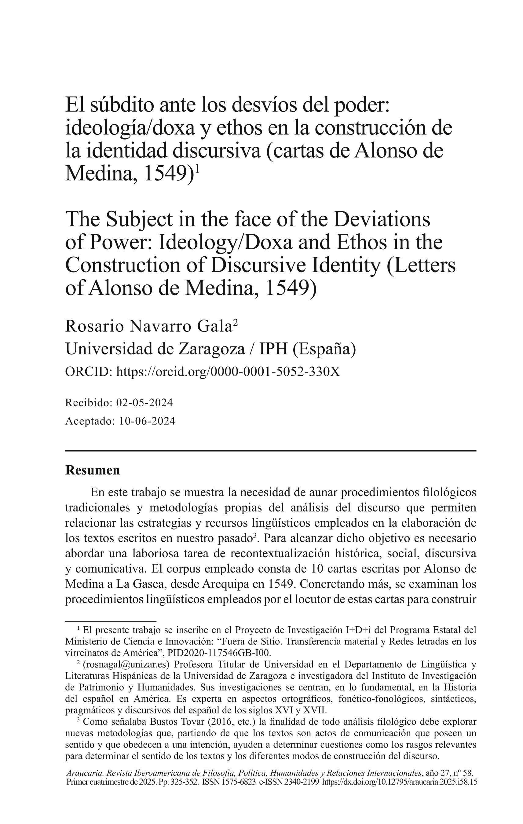 El súbdito ante los desvíos del poder: ideología y construcción de la identidad discursiva (cartas de Alonso de Medina, 1549)