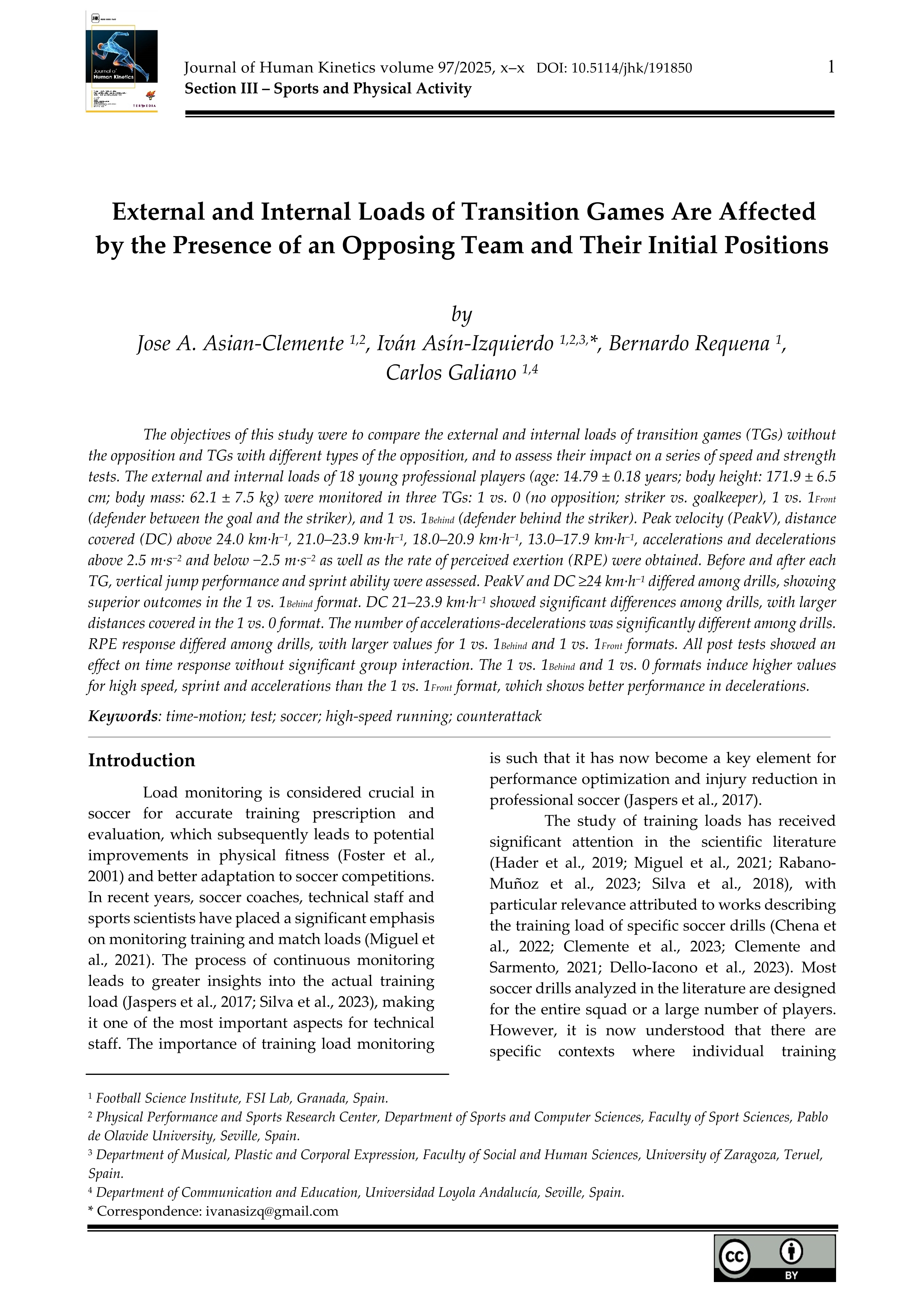 | Página principal > Artículos > External and Internal Loads of Transition Games Are Affected by the Presence of an Opposing Team and Their Initial Positions |