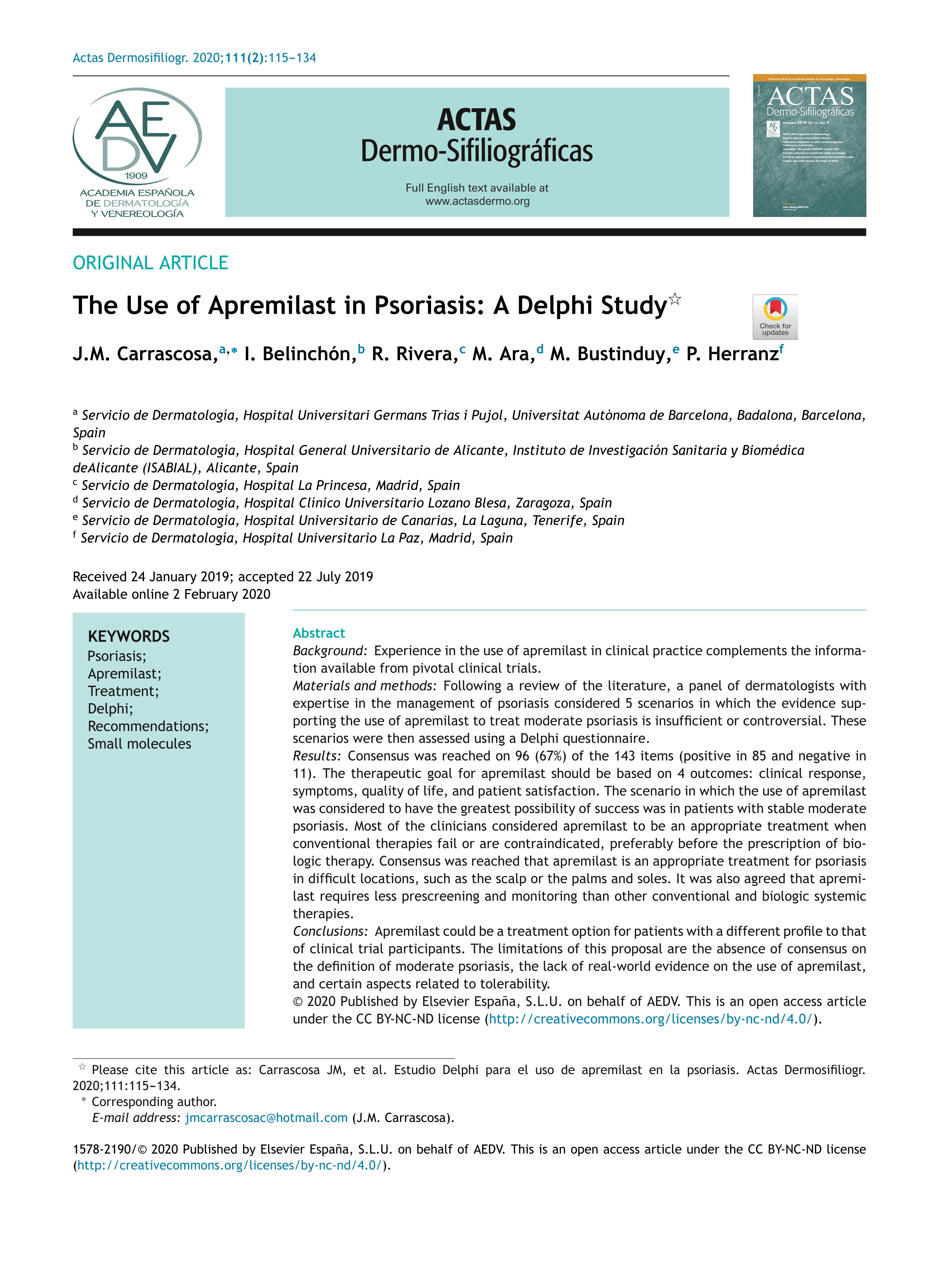 Estudio Delphi para el uso de apremilast en psoriasis