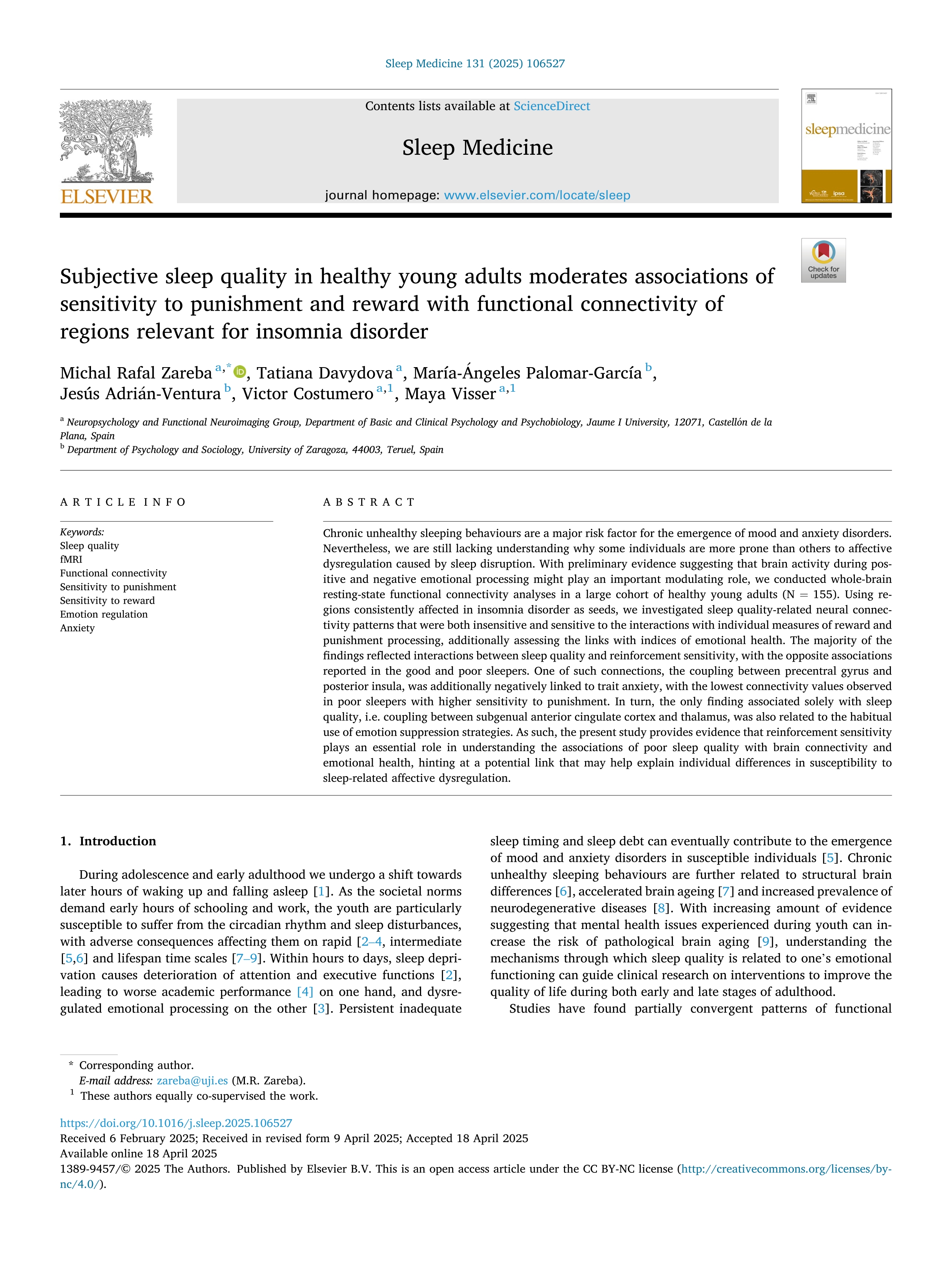 | Página principal > Artículos > Subjective sleep quality in healthy young adults moderates associations of sensitivity to punishment and reward with functional connectivity of regions relevant for insomnia disorder |
