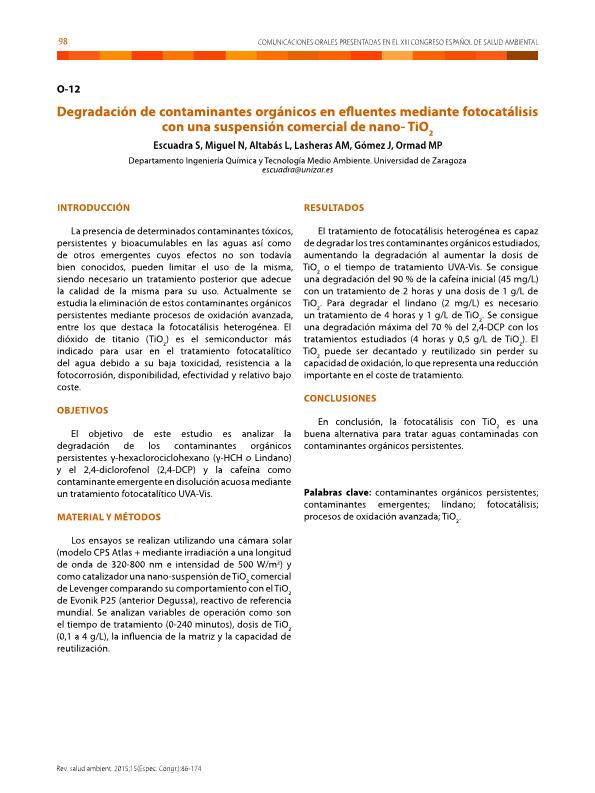 | Página principal > Artículos > Degradación de contaminantes orgánicos en efluentes mediante fotocatálisis con una suspensión comercial de nano-TiO2 |