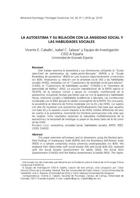 La autoestima y su relación con la ansiedad social y las habilidades sociales