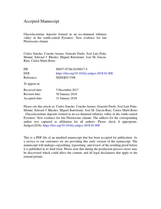 Página principal > Artículos > Glaciolacustrine deposits formed in an ice-dammed tributary valley in the south-central Pyrenees: New evidence for late Pleistocene climate