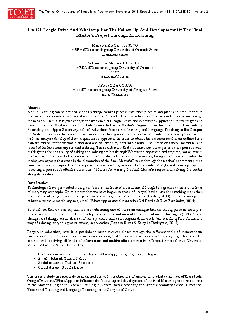 Use of google drive and whatsapp for the follow-up and development of the final master's project through m-learning