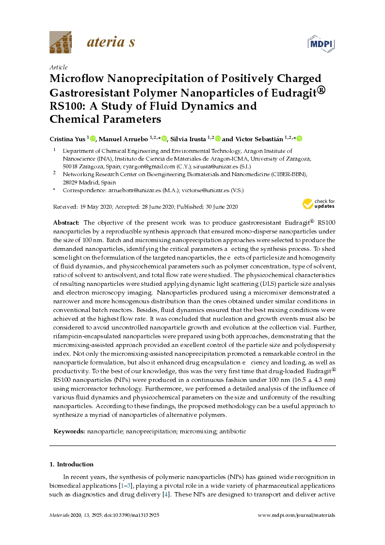 Microflow nanoprecipitation of positively charged gastroresistant polymer nanoparticles of Eudragit® RS100: A study of fluid dynamics and chemical parameters