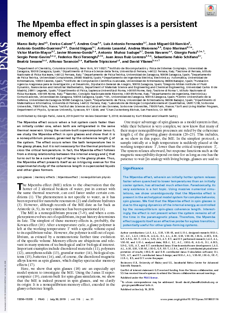 | Página principal > Artículos > The Mpemba effect in spin glasses is a persistent memory effect |
