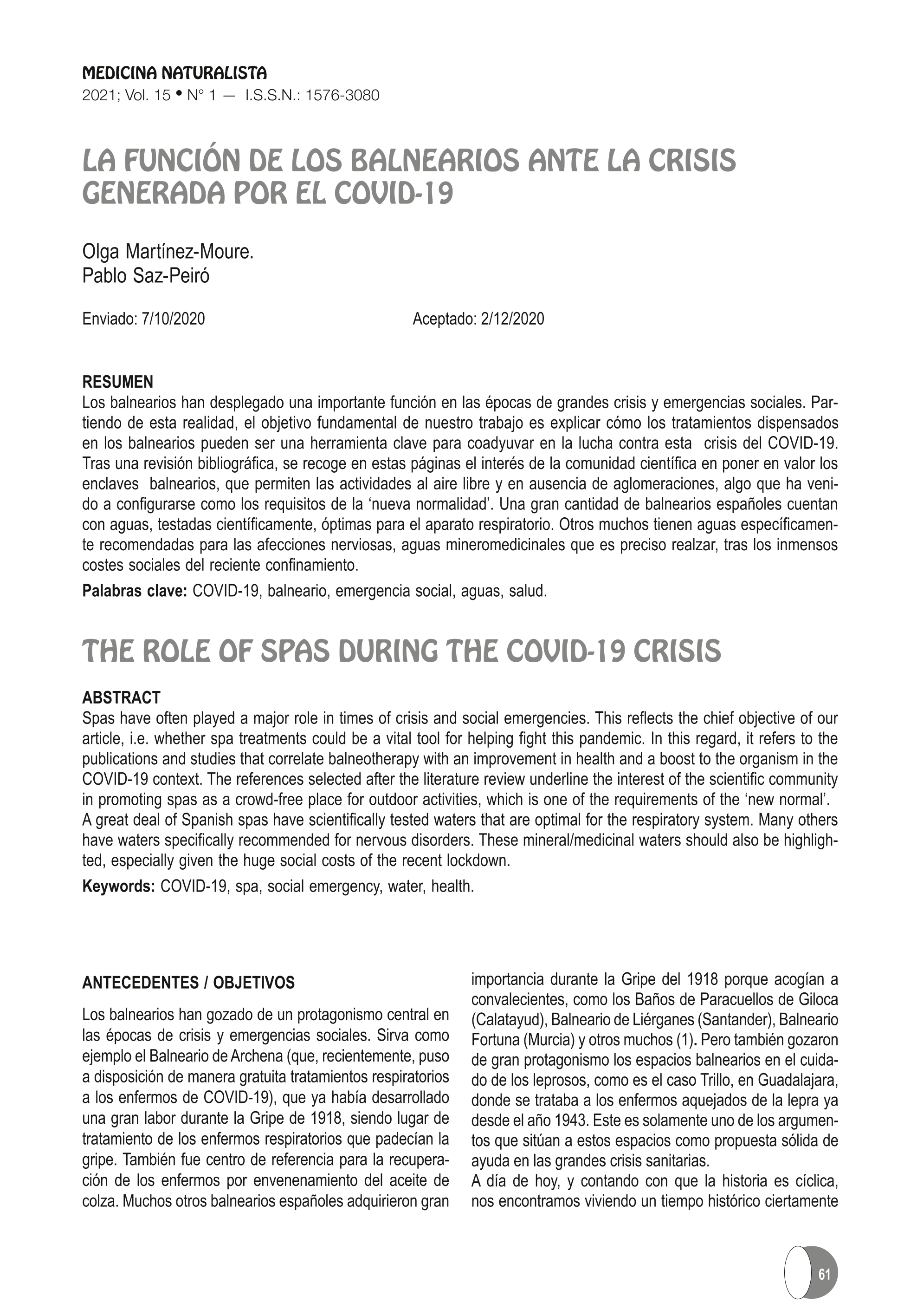 | Página principal > Artículos > La función de los balnearios ante la crisis generada por el COVID-19. > Acceso al texto completo |